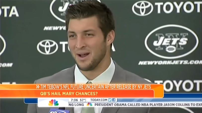 [ON-SCREEN HEADLINE: Tim Tebow's NFL Future Uncertain After Release by NY Jets; QB's Hail Mary Chances?]