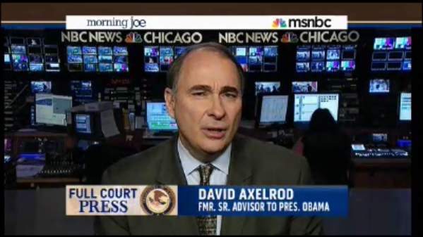 Appearing on Morning Joe, Axelrod struck back at CBS's Bob Schieffer for his criticism of the White House on Sunday's Face the Nation (video follows with transcript and commentary):