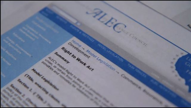 Of course, this statement was misleading at best. Nothing that has come out of ALEC instantly became law. Rather, ALEC is a forum for legislators to talk to leaders from the corporate sector about new ideas, which are then submitted to be voted on in state governments. These bills then have to go through the exact same process as any other bill before they can become law.