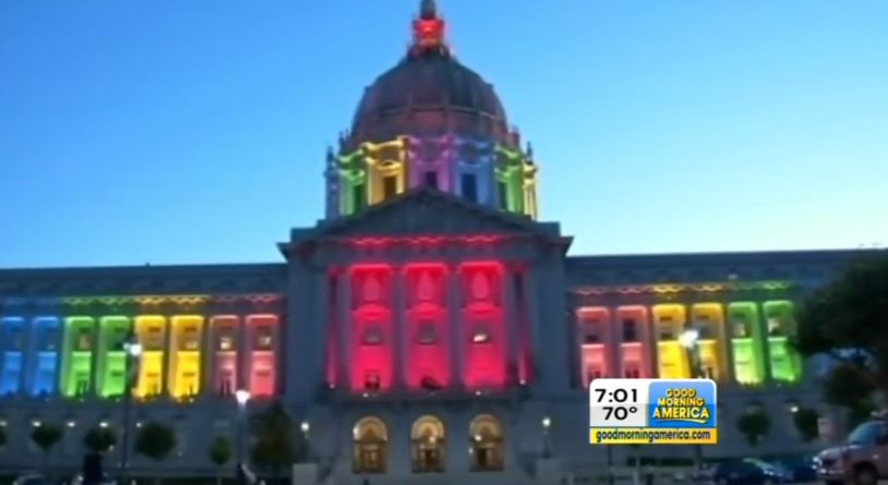 In a follow-up report, news reader Josh Elliott raved that San Francisco's city hall was lit up "the colors of the rainbow."