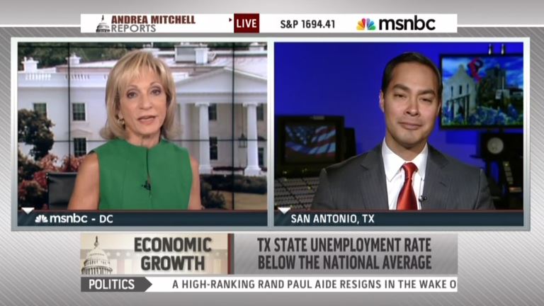 In an adoring softball interview with San Antonio Mayor Julian Castro on her Monday MSNBC show, host Andrea Mitchell eagerly wondered if the Democrat was leading the way in turning the solidly red state blue: "Take a look at Texas Monthly, both you and your brother [Congressman Joaquin Castro] and Wendy Davis are on the cover of Texas Monthly. Is there a Democratic revival coming up in Texas?" [Listen to the audio or watch the video after the jump]