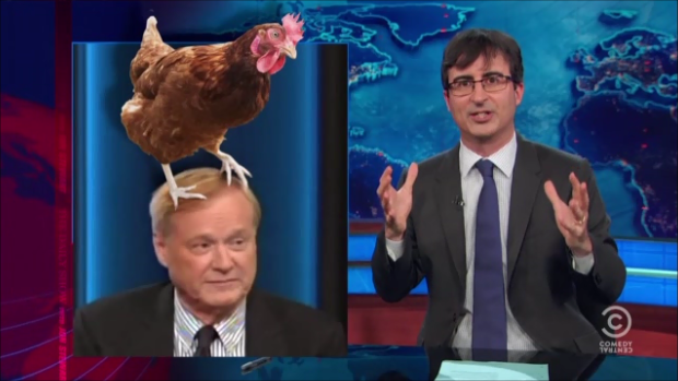 On Monday, John Oliver while substitute-hosting Comedy Central's Daily Show marvelously illustrated Matthews' propensity to make horribly wrong predictions concluding, "Chris Matthews doesn't just routinely have egg on his face - he has a chicken copping a squat onto his face" (video follows with transcript and absolutely no need for additional commentary):