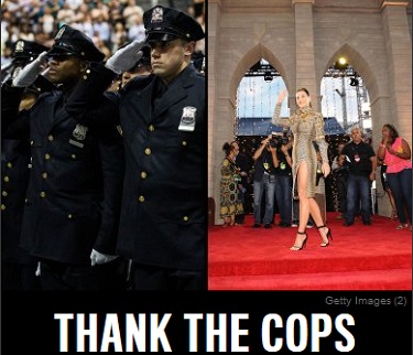 "Thank the Cops" read a teaser headline in the lightbox dominating the top left column of the page. "They may not have gotten any love at the VMAs, but if the cops hadn't cleaned up that crime-ridden block in Brooklyn, there would have been no red carpet" for the MTV awards program, added an editorial caption. Writer Michael Daly explained not only how smart policing helped "save the city" but reminded readers that dedicated NYPD officers in the 1950s helped save Martin Luther King Jr.'s life and with it, the iconic "I Have a Dream" speech that followed five years later: