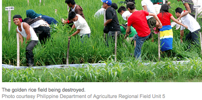 The deception involves activists who are against any form of biotechnology advances laying waste to a field of genetically modified "golden rice" in the Philippines (bolds are mine; links are in original):