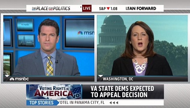 Just behind the "war on women" and charges of racism, MSNBC's third favorite bogeyman is the specter of "voter suppression." The network was obsessed with that meme in 2012 and will doubtless pound the pulpit on it in the congressional midterms, but it's been relatively quiet about it in 2013. That changed today when MSNBC Live anchor Thomas Roberts brought on Kathy Culliton-Gonzalez of The Advancement Project to forward the complaints of Virginia Democrats against a state voter registry clean-up that has removed about 38,000 from the state's rolls. Liberal Democrats in the Old Dominion took the state to court for daring to kick off the voter registry folks who had registered to vote in other states after having registered in Virginia. Federal judge Claude Hilton turned down their request to reverse the move.