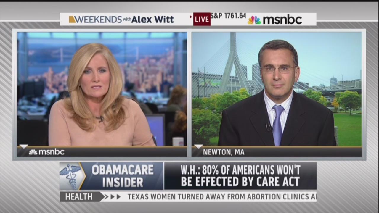 Leave it to MSNBC weekend anchor Alex Witt to continue marching forward, carrying the flag of ObamaCare as the rollout phase sputters along at a crawl. On Sunday’s Weekends with Alex Witt, the host often came across as a White House publicist, defending both the president and his health care law.