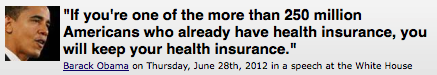 Even when it occasionally does credible work, Politifact, the website which pretends to be the ultimate arbiter of the truth or falsehood of claims made by politicians and public figures, continues to beclown itself. On Monday, Matt Hadro at NewsBusters noted the absurdity of Politifact's unchanged "Half True" assessment of President Obama's June 2012 claim — a claim made with minor variations more than 20 times over a four-year period — that "If you're one of the more than 250 million Americans who already have health insurance, you will keep your health insurance."