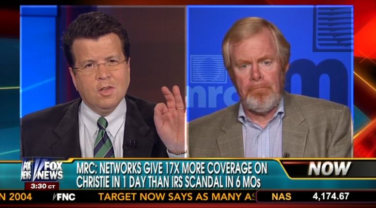 Media Research Center President Brent Bozell appeared with Fox News anchor Neil Cavuto to slam the "obnoxious" double standard in how journalists have covered Chris Christie's traffic scandal in two days, versus the scant number of stories on the Obama IRS controversy over six months.