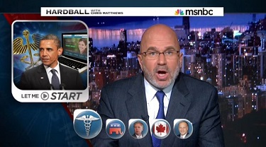 -The Obama-endorsing talker running to the President's defense over ObamaCare on the November 8, 2013 edition of MSNBC's Hardball, even a month after the disastrous rollout of HealthCare.gov.