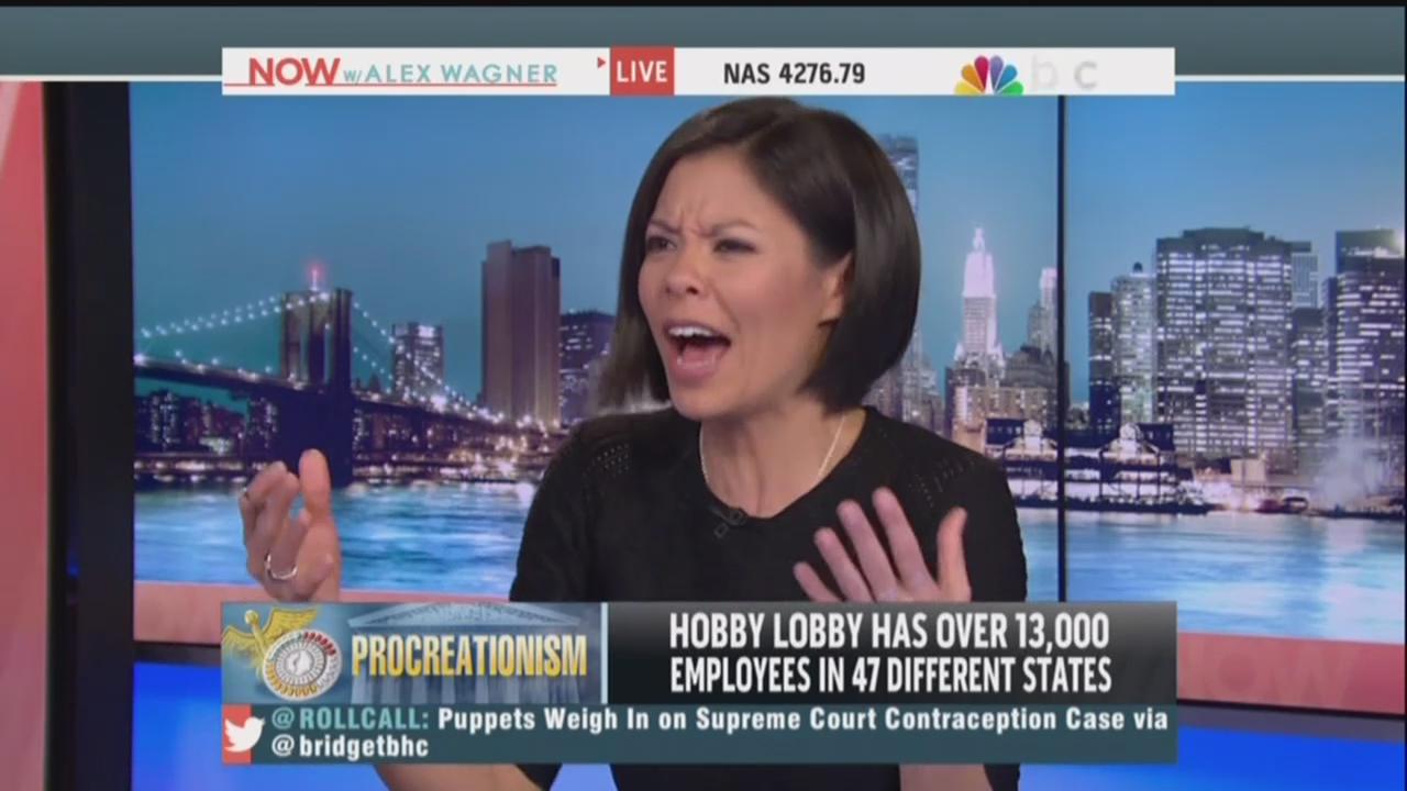 MSNBC’s Alex Wagner got very dramatic while talking about birth control on Friday’s episode of her show NOW with Alex Wagner. Ms. Wagner and Cecile Richards of Planned Parenthood were discussing the Sebelius v. Hobby Lobby case, in which the Supreme Court will decide whether the government (via ObamaCare’s contraception mandate) can order private business owners to violate their religious faith by providing abortion-inducing drugs to their employees.