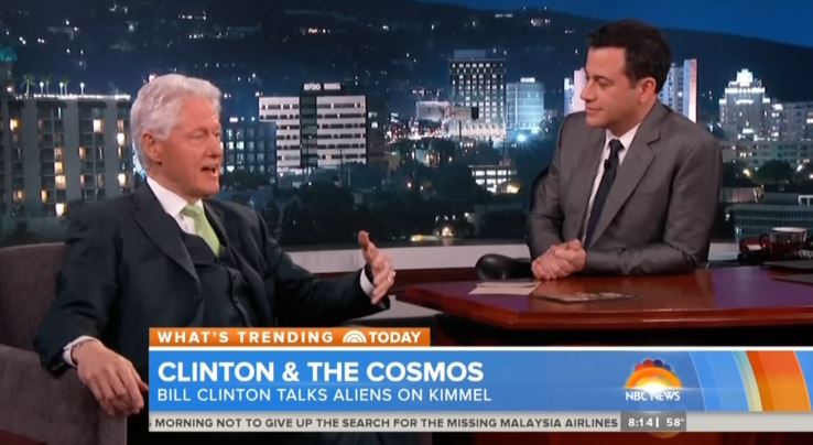 On Today, Natalie Morales enthused, "When he was asked about aliens, well, Clinton said the science seems to point in one direction." She then helpfully noted, "Clinton later said he enjoys being called America's first black president but said that President Obama actually deserves that title." CBS This Morning also played clips of the ex-President on Jimmy Kimmel Live.