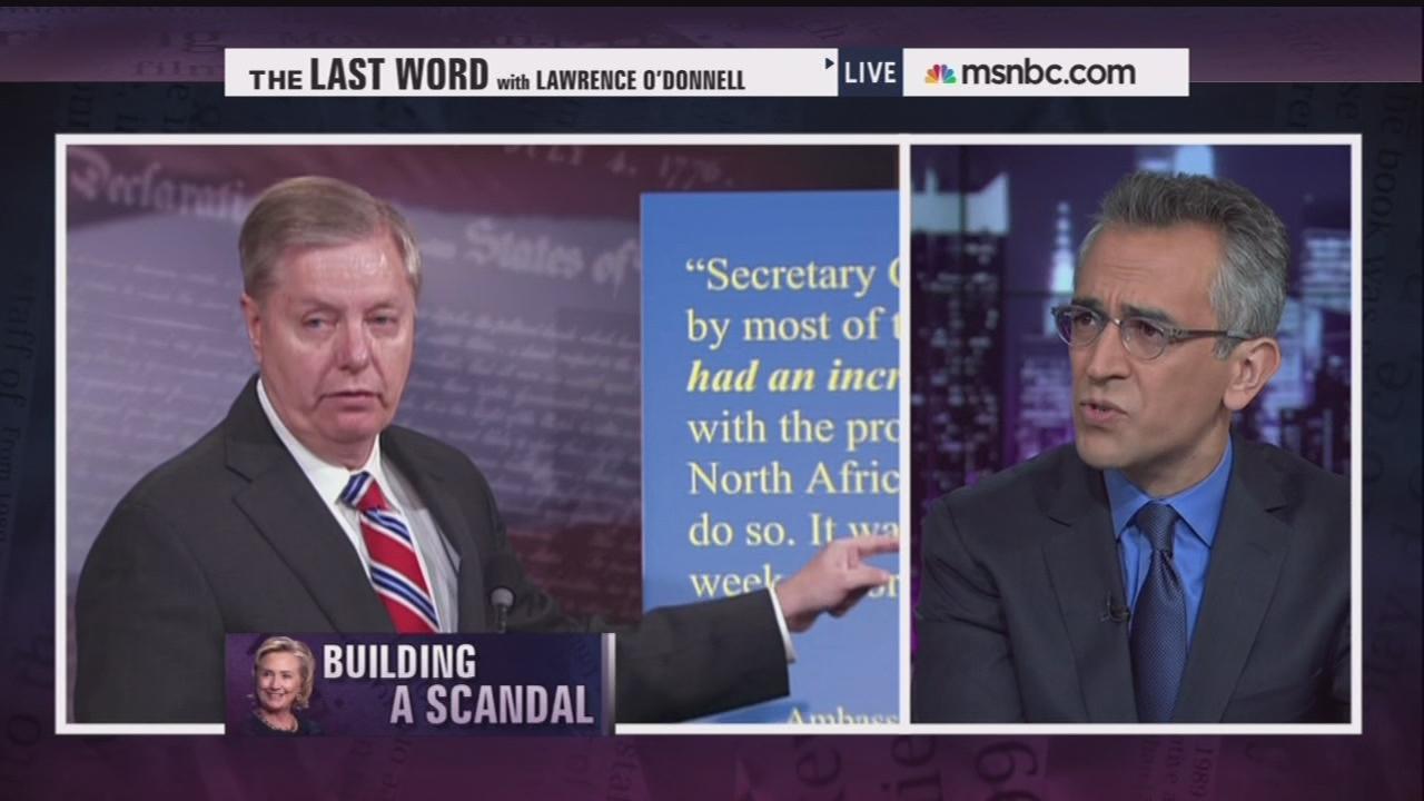 ARI MELBER: And that brings us back to my favorite Senate press conference in a while - favorite in a bad way - which was Lindsey Graham. He's supposed to be this serious wing of  Republican foreign policy circles. He worked with Senator McCain to rewrite our rules at Guantanamo. He is not a random House member. And he's going deep down what Jon Stewart called the "brain-ghazi" rabbit hole to pull at her health in this theory, Richard.