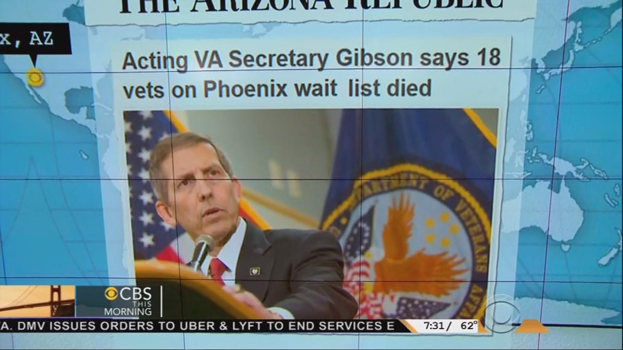On Friday, CBS This Morning reported that 18 people died waiting for appointments at the Phoenix VA, this according to acting Veterans Affairs secretary Sloan Gibson. Thus far, the story has gone unreported by both ABC and NBC.
