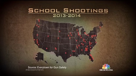Miguel Almaguer hyped on Wednesday's NBC Nightly News that "since the mass shooting in Newtown a year and a half ago, there's been at least 74 school shootings across the country – roughly one every week." However, the correspondent failed to mention that this figure came from the pro-gun control group Everytown for Gun Safety, which was founded earlier in 2014 by liberal billionaire Michael Bloomberg. [MP3 audio available here; video below the jump]
