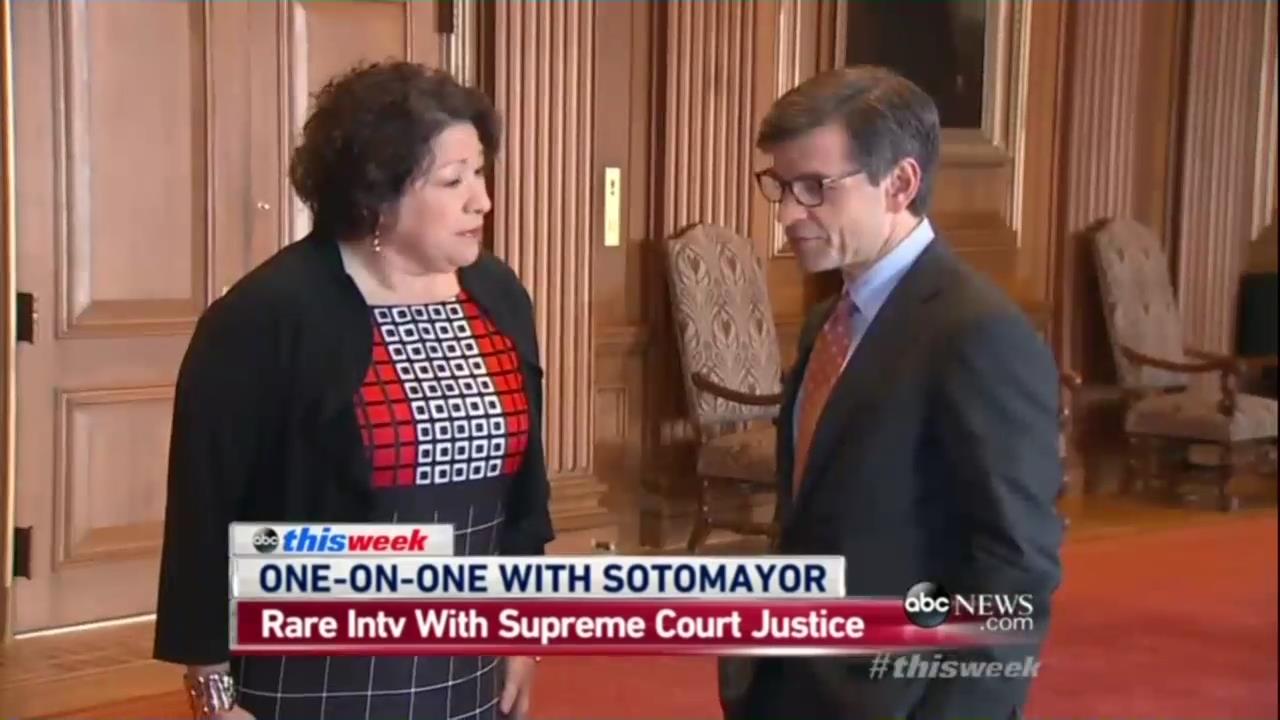 The interview, which was more of a glowing profile of Ms. Sotomayor, touched on a variety of subjects ranging from her recent encounter with Hillary Clinton to whether or not the justice still experienced sexism on the bench. Stephanopoulos wondered “You also write in your book about some of the sexism you faced even as a prosecutor. Any as a Supreme Court justice or does it go away?” [See video below.]