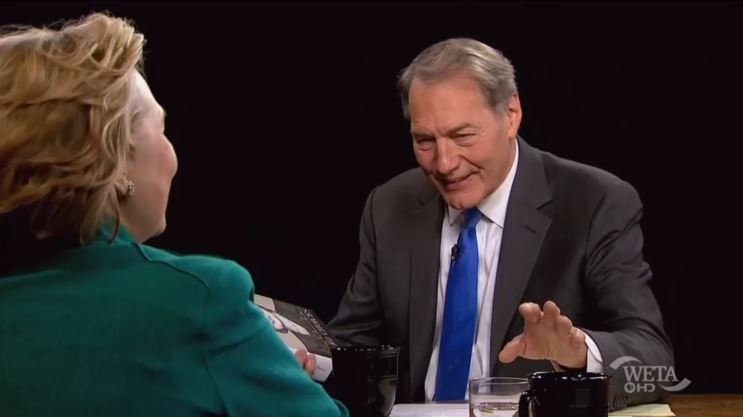 On Thursday night’s episode of his PBS show, Charlie Rose began by showering guest and former Secretary of State Hillary Clinton with praises from the likes of Henry Kissinger, the late Maya Angelous and, naturally, Charlie Rose himself! From reading a glowing quote from Henry Kissinger to reading a Maya Angelou poem all about her to Rose announcing “I consider Hillary Clinton a friend,” it was a slobbering start to a softball interview.