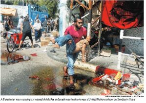 The growing civilian death toll has stirred outrage in Europe and large parts of the Arab world and, combined with Sunday’s strike near the Rafah school, prompted Secretary General Ban Ki-moon of the United Nations to call the attack a “moral outrage and a criminal act” and to demand that those responsible for the “gross violation of international humanitarian law” be held accountable.
