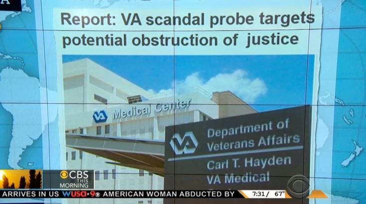 GAYLE KING: USA Today says the VA scandal now includes obstruction of justice allegations. Ninety three health care facilities are being investigated by the VA’s inspector general. The Justice Department and FBI are also joining this probe. At issue, whether workers at VA centers who falsified scheduling records were getting in the way of investigators.