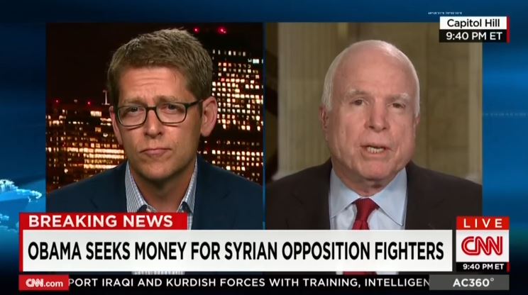 MCCAIN: Oh, come on, Jay, we knew all about them then. You just didn't choose to know. I was there in Syria. We knew them. Come on, you guys are the ones – it’s your boss was the one when the entire national security team wanted to arm and train them that he turned them down, Mr. Carney after a –