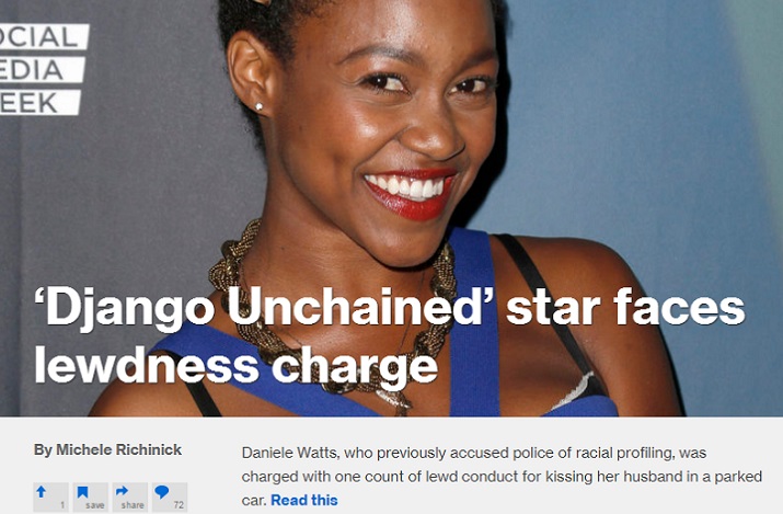 On September 11, African-American actress Daniele Watts -- best known for her role in Django Unchained -- and her boyfriend, who happens to be white, were investigated and briefly detained by a Los Angeles police officer who responded to a call from a bystander filing a complaint about lewd misconduct. Ms. Watts went to the media with complaints of racial profiling and insisted she was merely making out with her boyfriend. Photographic and eyewitness evidence, however, attested to more intense sexual activity going on.