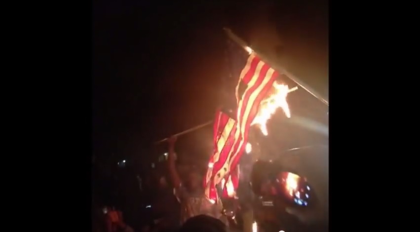 Meanwhile, defiling the flag seems to be a common activity among the race protesters. Back in December, video surfaced of National Guardsmen in Ferguson rescuing pieces of a flag the protesters had burned on the street. “Just so you know, the Guardsmen have come over to look for pieces of the American flag that got burned,” a police officer says in the video.