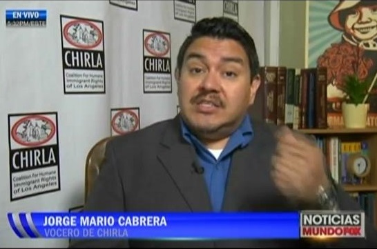 El conductor de MundoFox, Rolando Nichols, presentó a Cabrera como el vocero de la Coalition for Humane Immigrant Rights of Los Ángeles (CHIRLA por sus siglas en inglés), como “una de las principales entidades pro-inmigrantes en los Estados Unidos”. Esta organización fue fundada después de la amnistía de Reagan en 1986 y su estatus legal como 501(c)(3) exenta de impuestos le prohíbe participar en actividades partidistas políticas.