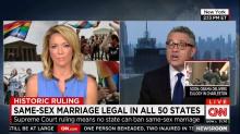 During CNN's live coverage of the Supreme Court ruling mandating the nationwide legality of same-sex marriage, CNN's senior legal analyst, Jeffrey Toobin, repeatedly made cracks about Antonin Scalia, dubbing the conservative Supreme Court Justice as the "'get off my lawn' justice," and asserting that there was "outward bigotry" in a dissenting opinion Justice Scalia gave back in 2003 on a gay rights-related case.