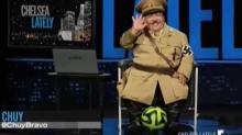 On Monday, Host Chelsea Handler featured an Adolf Hitler parody in reaction to Germany’s World Cup win during E! Channel’s “Chelsea Lately” show. To set up the show, Handler’s sidekick Chuy Bravo dressed as the Nazi dictator because “Germany won the World Cup.” Comedian Ian Karmel, amidst other panelists, joked, “I’m a Jew, but I’m still glad Germany won. It’s nice for them to have something gold that they didn’t pry out of my grandfather’s mouth.” Continues after video.