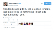 CNBC's John Harwood has been hard at work on Twitter today, not reporting news, of course, but defending former Secretary of State Hillary Clinton's left-wing applause line last week that businesses don't create jobs.