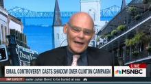 Appearing on MSNBC's Andrea Mitchell Reports on Monday, longtime Democratic operative and Clinton adviser James Carville bizarrely claimed press coverage of the Hillary Clinton email scandal was just part of some right-wing plot: "All of this is just the same cockamamie stuff that we go through. The [New York] Times gets something from some right-wing talking points, they print the story....It's all about nothing."
