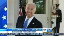 GMA news reader Amy Robach revealed, "The Vice President of the United States apparently likes to go skinny dipping...This is all according to a new book which quotes Secret Service agents saying the VP can often be found in his pool, in his birthday suit." She added, "Some agents admitting they'd rather cover their eyes or cover someone else, just hoping that he'll cover himself up." [See Video below. MP3 audio here.]