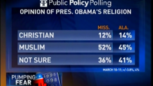 Polls released Monday showed a large percentage of Republicans in Alabama and Mississippi think President Obama is a Muslim.