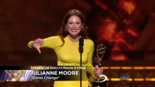 Julianne Moore won for best actress in a miniseries or movie, and proceeded to celebrate by mocking her character saying, "Wow, I feel so validated because Sarah Palin gave me a big thumbs down" (video follows with commentary):