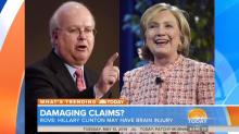 Guthrie quoted Rove "reportedly" claiming at a recent conference that Clinton being hospitalized for "thirty days" in 2012 after suffering a fall may have been evidence she had a "traumatic brain injury." Following the quote, Guthrie noted: "Well, for the record, Clinton was in the hospital for three days, not thirty. And her team is hitting back hard this morning."