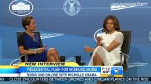 Robin Roberts, the co-host of Good Morning America, is a favorite pick of top Democrats to host fawning, content-free interviews and panel discussions. On Tuesday's GMA, she showcased an exclusive one-on-one interview with Michelle Obama. As though she were reading talking points, the journalist touted, "Now, to the big all-day White House summit on working families. President Obama making a strong pitch for guaranteed paid maternity leave." [See video below. MP3 audio here.]