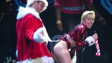 On Friday, performing at the Jingle Ball concert in Los Angeles, Miley Cyrus twerked a male dancer on stage dressed as Santa Claus (video follows with commentary, photo courtesy INFphoto.com):