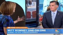 In a live interview with former Republican presidential nominee Mitt Romney on Friday's NBC Today, co-host Savannah Guthrie grilled him on his interactions with New Jersey Governor Chris Christie: "...you see the bridge scandal and other allegations have come forward. And they all seem to have a theme, which is that he uses, allegedly, hardball, sometimes bullying tactics against people who cross him. Have you never experienced that side of him?" [Listen to the audio or watch the video after the jump]