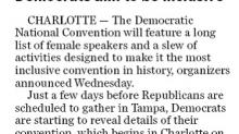 "Democrats aim to be inclusive," blurts the headline in Amy Gardner's 5-paragraph item on how the Democratic convention "will feature a long list of female speakers and a slew of activities designed to make it the most inclusive convention in history, organizers announced Wednesday."