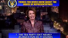 Most of her offerings Tuesday were somewhat apolitical, but the top thing "You Never Knew About the House of Representatives" was "The Tea Party isn't nearly as much fun as it sounds" (video follows with partial transcript and commentary):