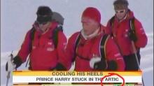 On Friday's NBC Today, as co-host Meredith Vieira spoke with correspondent Ben Fogle about Britain's Prince Harry being temporarily stuck at the North Pole, the headline on screen read: "Cooling His Heels; Prince Harry Stuck in the Artic." Halfway through the segment, the show's graphics department apparently noticed the spelling error, changing it to "Arctic."