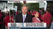 Throughout its morning and afternoon news coverage today, MSNBC has dealt with the hours-old teachers strike in Chicago. NBC reporter Kevin Tibbles did a few standups next to a picket line "outside the Ray Elementary School in Chicago." During his 11:40 a.m. Eastern live report, Tibbles interviewed a union teacher, John Cusick, who said he'd heard from parents, "mostly" who "support us" because "they know we care for their children" and "have their children's best interest at heart."