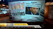 On Tuesday morning, the big three (ABC, CBS, NBC) networks continued to play-up the supposed controversy surrounding a letter signed by 47 Republican senators to the leaders of Iran regarding its negotiations with the Obama administration over its nuclear program. CBS This Morning did its best to promote the harshest critics with Jeff Glor introducing the network’s coverage by declaring “[i]n Washington this morning Democrats are denouncing a letter to Iran signed by most of the 54 Republican Senators. This morning's New York Daily News headline calls those Republicans 'traitors.'”