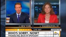 In the wake of Virginia Thomas requesting an apology from Anita Hill, on Thursday's CBS Early Show, fill-in co-host Chris Wragge used the story to raise questions about Thomas's political involvement: "That phone call is bringing up new scrutiny upon Virginia Thomas, who is not just an angry spouse but also a long-time advocate of conservative causes."