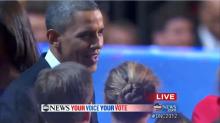 "But that last part of the speech was vintage Obama, trying to get these people here, to get the people that drove his campaign, talking about we have providence on our side. They loved it," reported Karl, who added "Tears in the eyes of a lot of these delegates, a lot of tears."