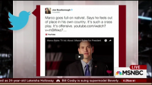 Scarborough, responding to an ad in which Rubio speaks of feeling "out of place in our own country," tweeted an attack accusing Rubio of playing a "crass, offensive, nativist" [read xenophobic/borderline racist] card. Rubio has fired back, putting out a fundraising message in which he slams Scarborough as an "elitist."