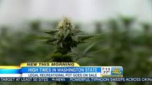 For the second day in a row, CBS This Morning reported live from Seattle as Washington State officially legalizes marijuana. The on-screen graphic for the segment promoted the "high times" sure to come. Standing in front of Cannabis City, reporter Adriana Diaz enthused, "At 12 o'clock, Tuesday, dubbed high noon, Cannabis City's owner cut police tape to symbolically mark the legal sale of recreational pot for the first time." [See video below. MP3 audio here.]