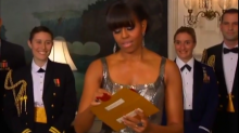 Coming on via satellite to assist Jack Nicholson present the Best Picture award was first lady Michelle Obama.