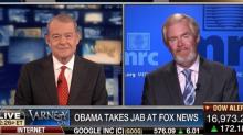 President Obama often takes cheap pot shots at Fox News from the podium because it's the only network doggedly reporting on his administration's numerous scandals, Media Research Center founder and president Brent Bozell told Stuart Varney on the Friday, October 3 edition of his eponymous Fox Business Network program. The rest of the media, however, are "fully vested" in Obama and willing to go "down in flames" with his flailing administration.