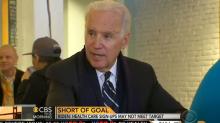 This Morning co-host Charlie Rose reported: "This morning the Obama administration is lowering expectations for the Affordable Care Act. In Minneapolis, Vice President Joe Biden acknowledged Wednesday the goal of signing up 7 million Americans will likely fall short....Biden blames the troubled rollout of the health care website." The headline on screen read: "Short of Goal; Biden: Health Care Sign-Ups May Not Meet Target."