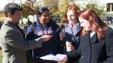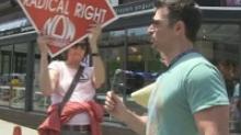 Joseph made trouble with the tiny group by asking if they’re protesting Limbaugh calling Sandra Fluke a “slut,” will they also be calling for an end to the Ed Schultz show after he called Laura Ingraham a “slut.” They refused to compare the two: